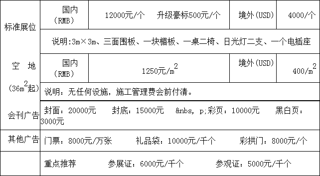 參展費用》會前一次性付清,參展商中途取消參展,參展費不退回。